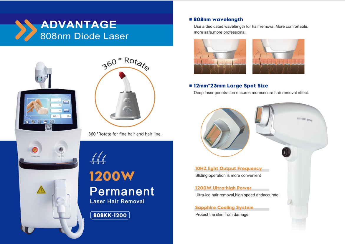 1. High power 1200 watts from the handle and large area of the impact zone 12*23mm for a fast and effective procedure and the resource of flashes of the handle is 20 million.2. Using German imported emitters to ensure stable operation and long service life of the laser.